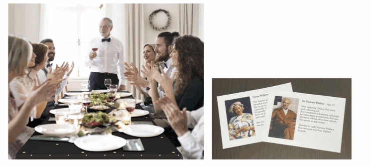 社交的な人、文化に長けた人、ゴシップ好きな人、色々な個性を持つ人々が、ある架空のディナーパーティーに参加します。その配席は簡単なようで大変難しいもの… 誰を誰の隣の席にするのか、その2人の相性はどうなのか等、考えることは一杯あります。素敵な時間を過ごせるディナーパーティーになるよう講師や皆さんと一緒にプロデュースしましょう!